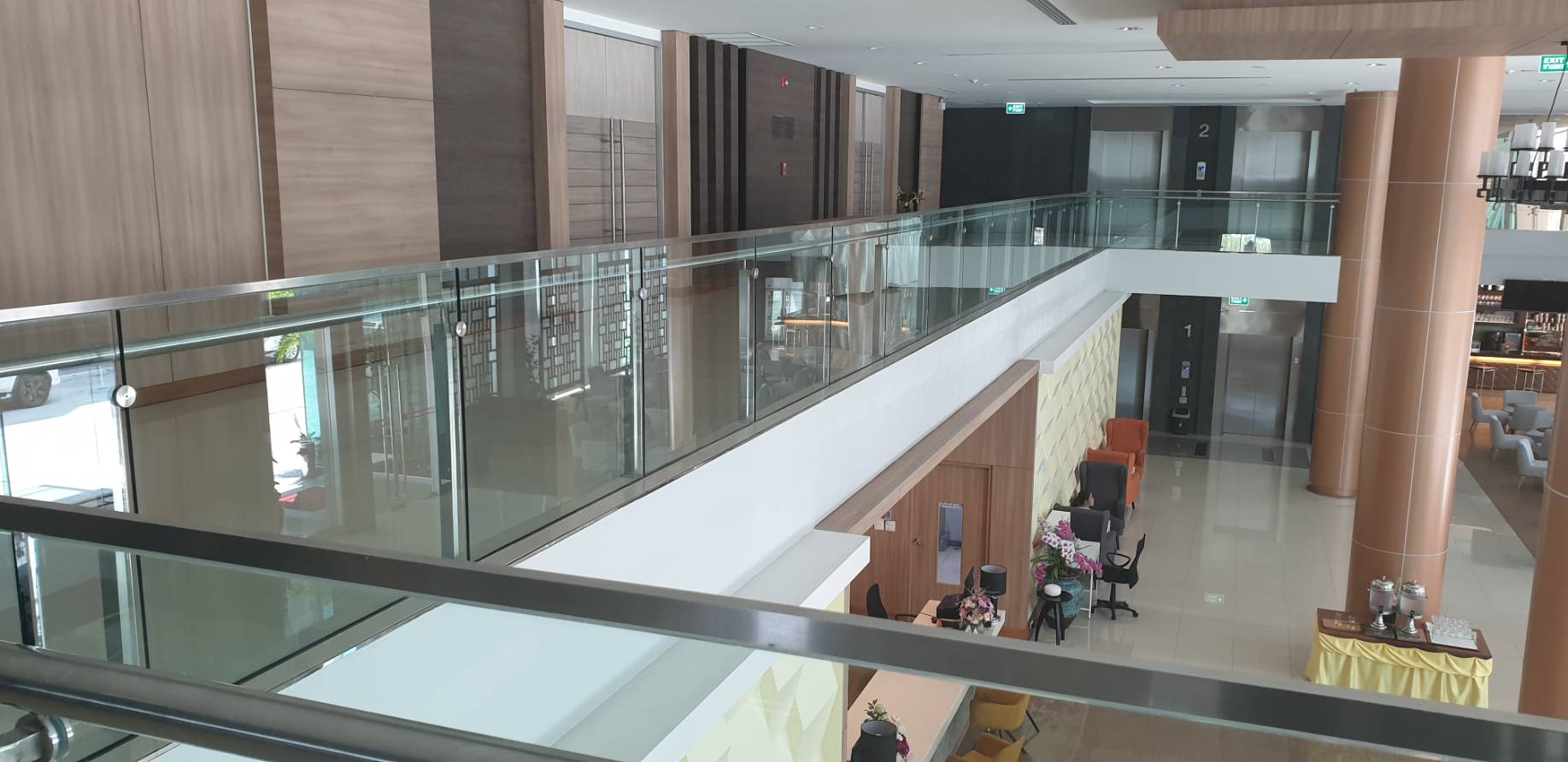 การทำราวระเบียงกันตกหรือราวบันไดกระจก จำเป็นที่ต้องใช้กระจกนิรภัยเทมเปอร์ (tempered glass) หรือกระจกนิรภัยลามิเนตเทมเปอร์ ความหนา ประมาณ 8-12 มิลลิเมตรขึ้นไป หรือถ้าสามารถใช้กระจกหนากว่านั้นได้ก็จะยิ่งทำให้เกิดความแข็งแรง แต่ราคาก็จะสูงขึ้นอีกมาก
